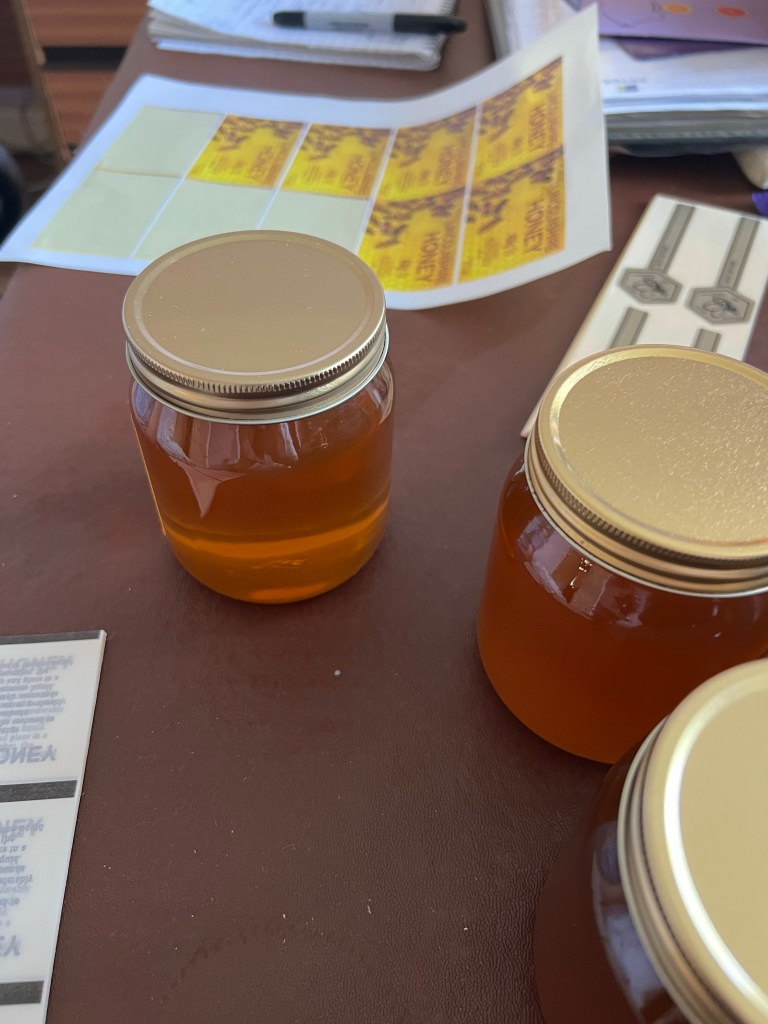 We sell the honey locally in jars, but also by the container to people making sweets or alcohol. The modest income is reinvested into new equipment.